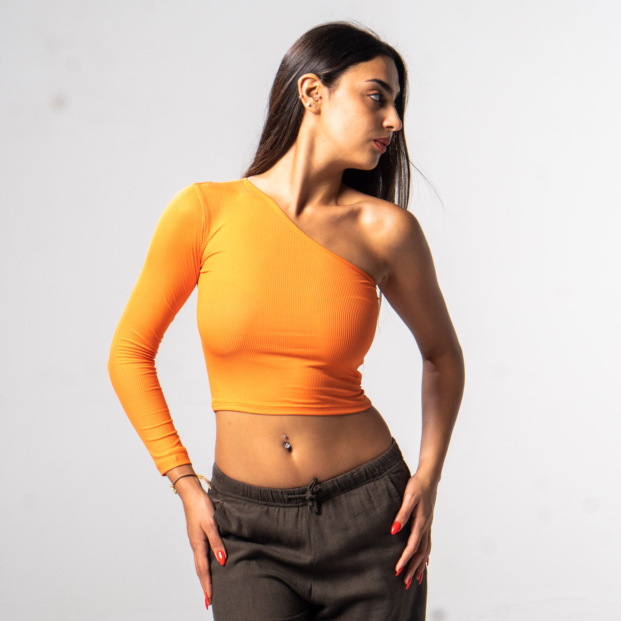 Asymetric Long Sleeve Top Orange