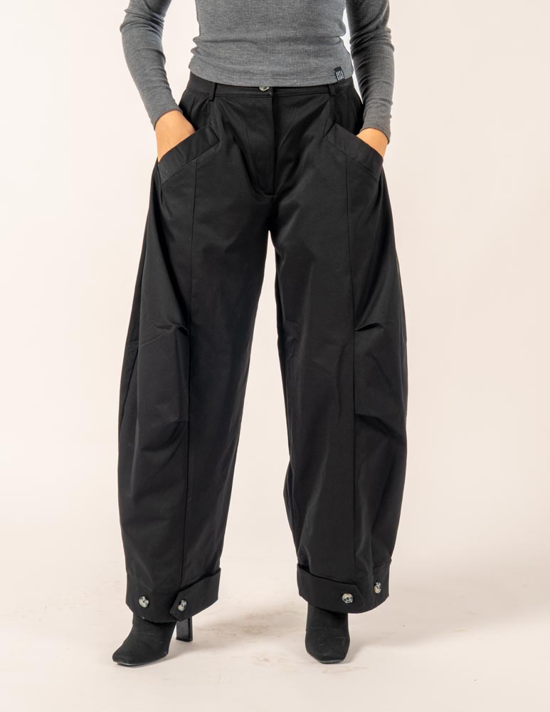 The Barrel Pants feature a curved, sculpted silhouette that tapers gently at the ankle, combining structure and comfort for an effortlessly modern look. Designed with a mid-to-high rise waist and a relaxed fit through the hips and thighs, they offer a flattering shape that suits every body type. Perfect for elevating everyday outfits while keeping a laid-back edge.
