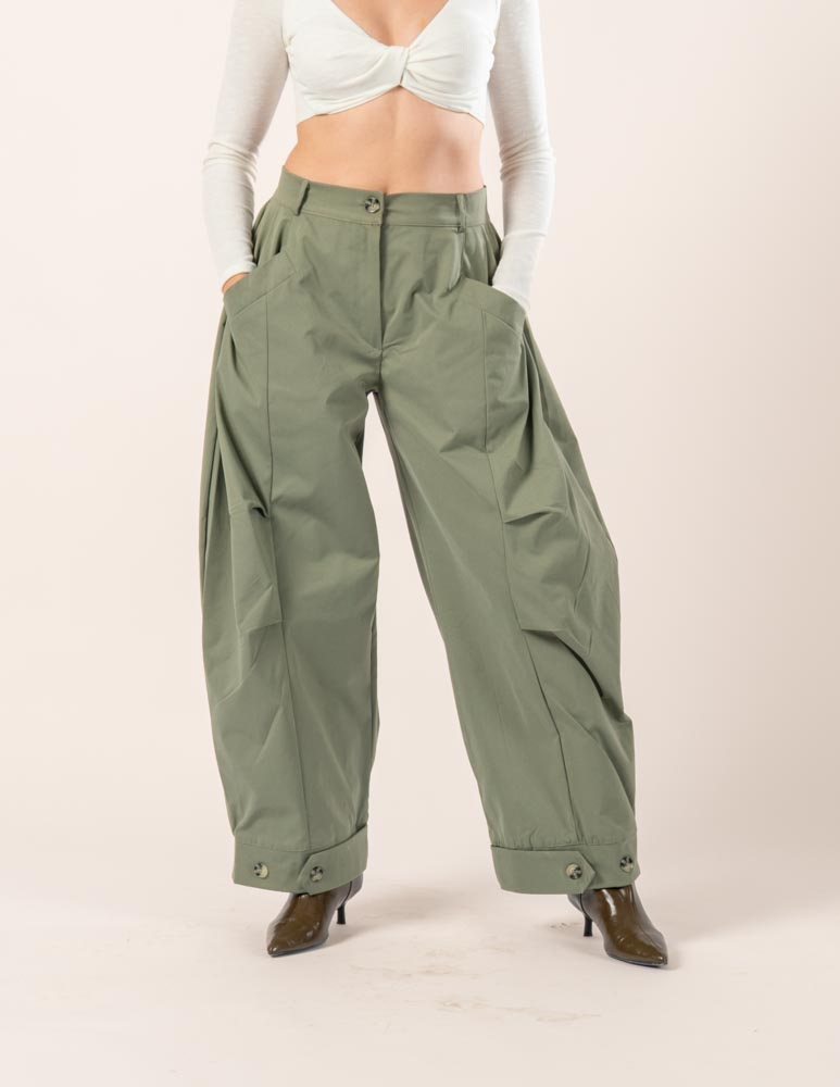 The Barrel Pants feature a curved, sculpted silhouette that tapers gently at the ankle, combining structure and comfort for an effortlessly modern look. Designed with a mid-to-high rise waist and a relaxed fit through the hips and thighs, they offer a flattering shape that suits every body type. Perfect for elevating everyday outfits while keeping a laid-back edge.