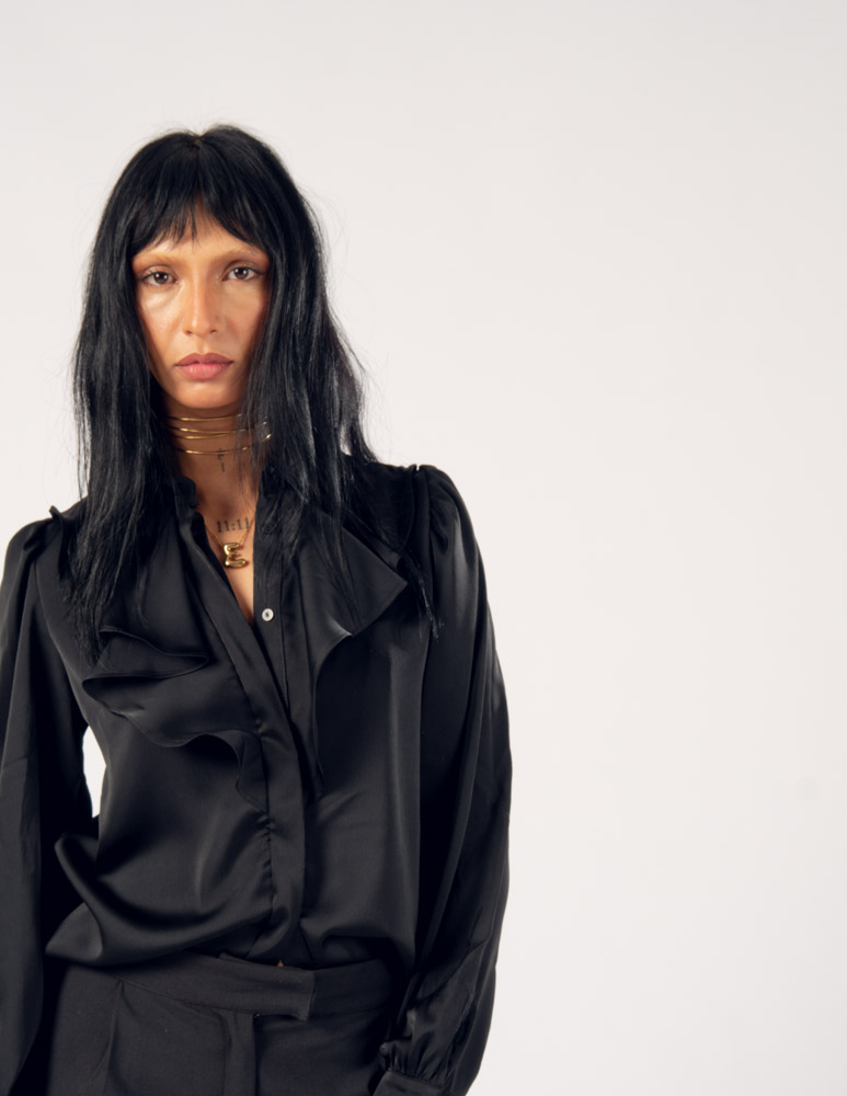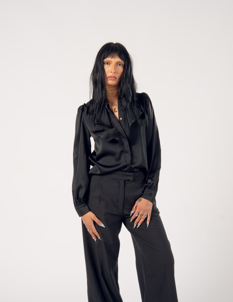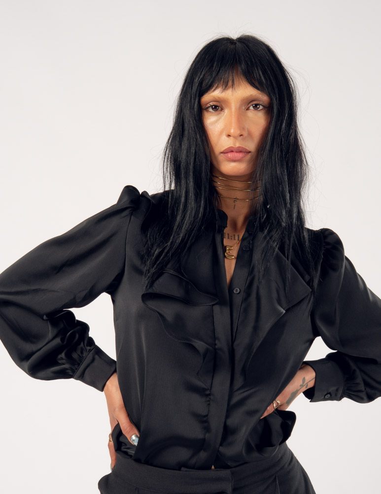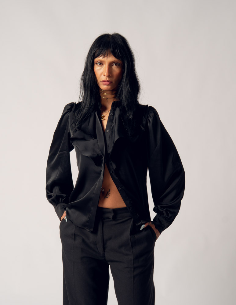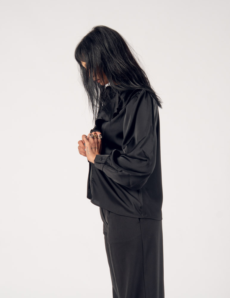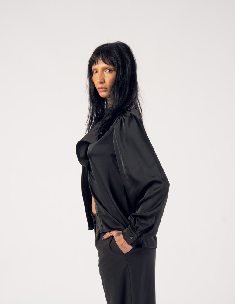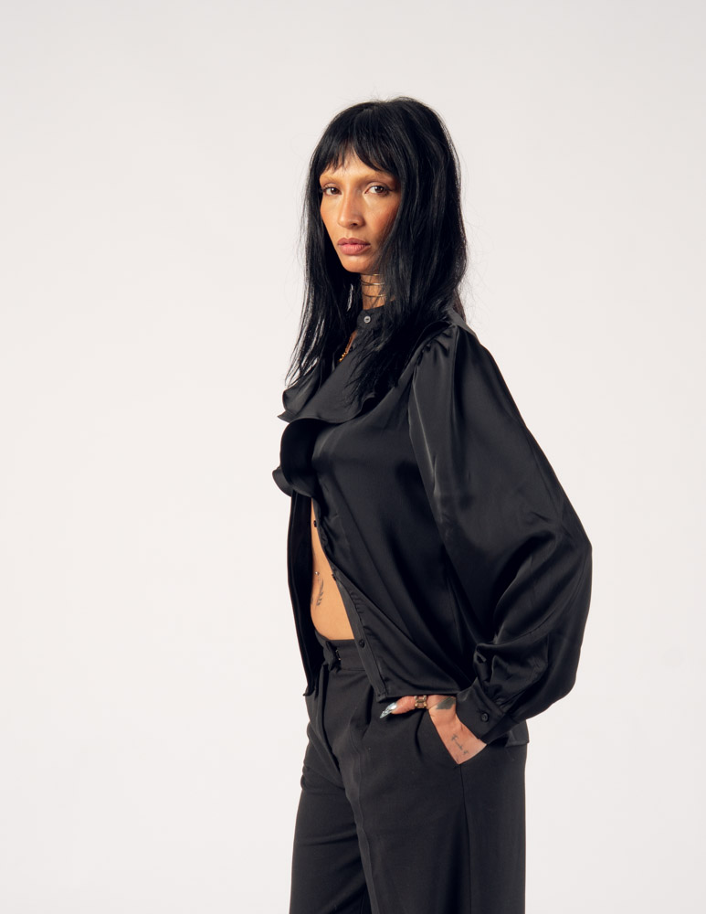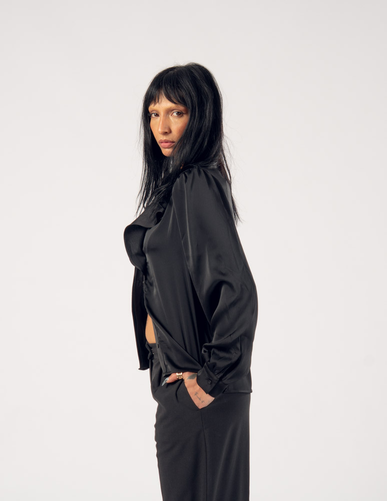 The Blossom Satin Shirt features a soft, fluid satin fabric designed to drape beautifully on the body. Its spring-ready silhouette is slightly relaxed, offering elegance and versatility for layering or standalone styling.