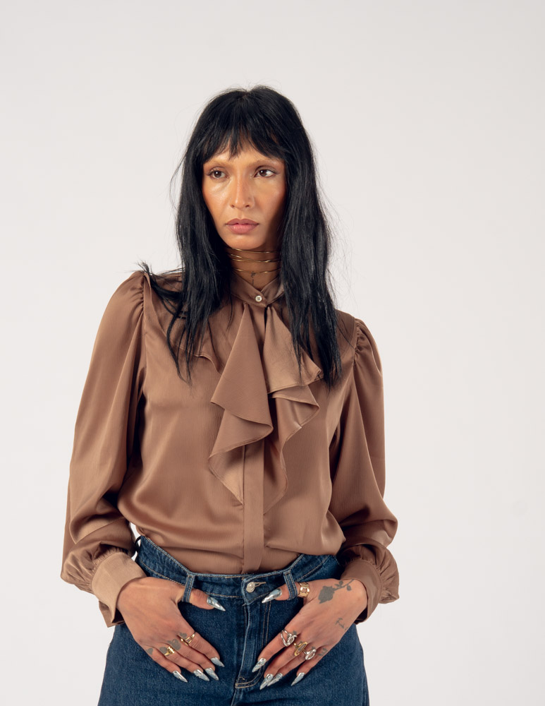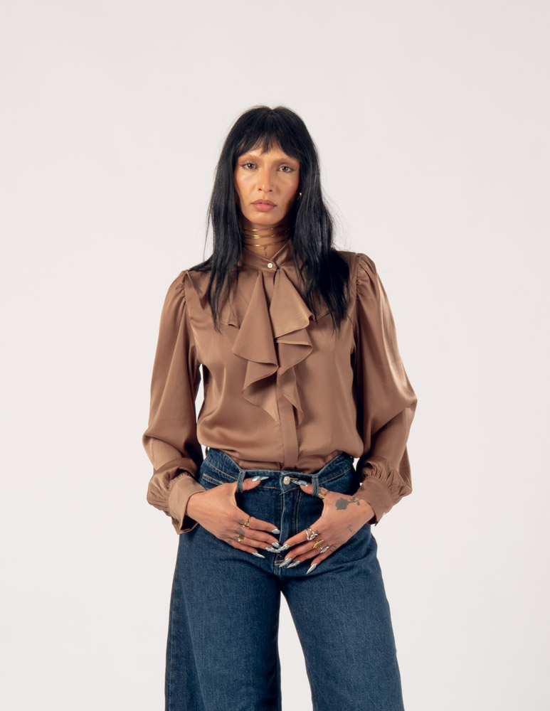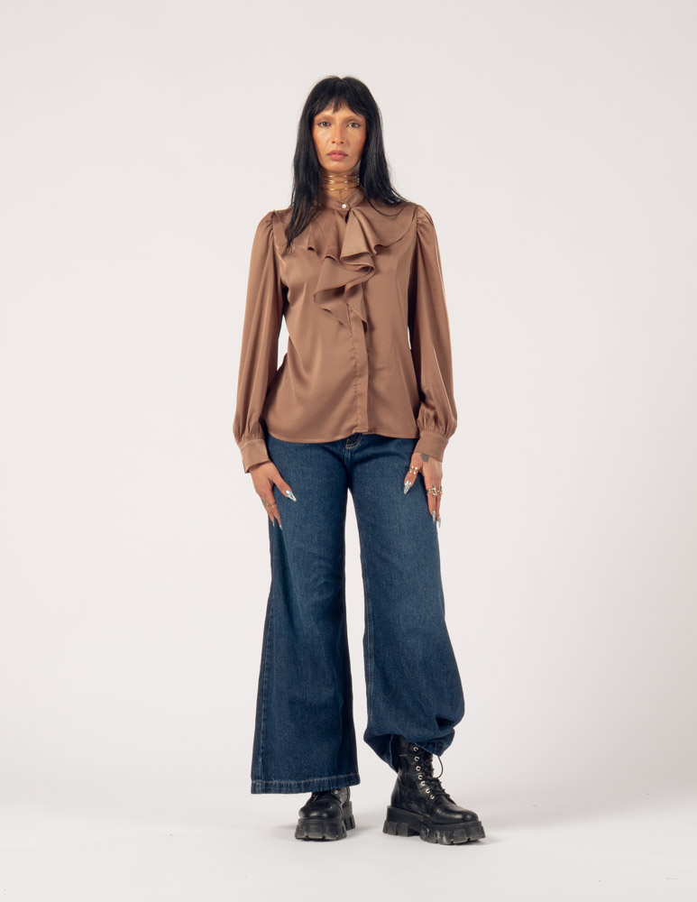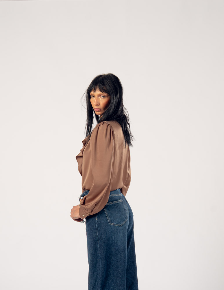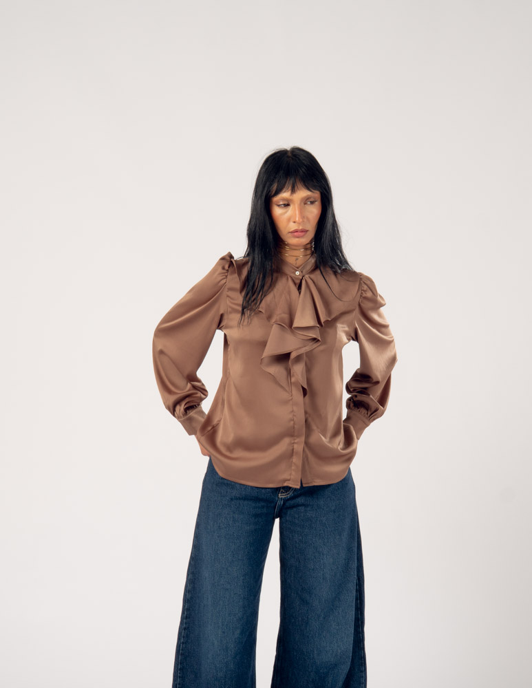 The Blossom Satin Shirt features a soft, fluid satin fabric designed to drape beautifully on the body. Its spring-ready silhouette is slightly relaxed, offering elegance and versatility for layering or standalone styling.
