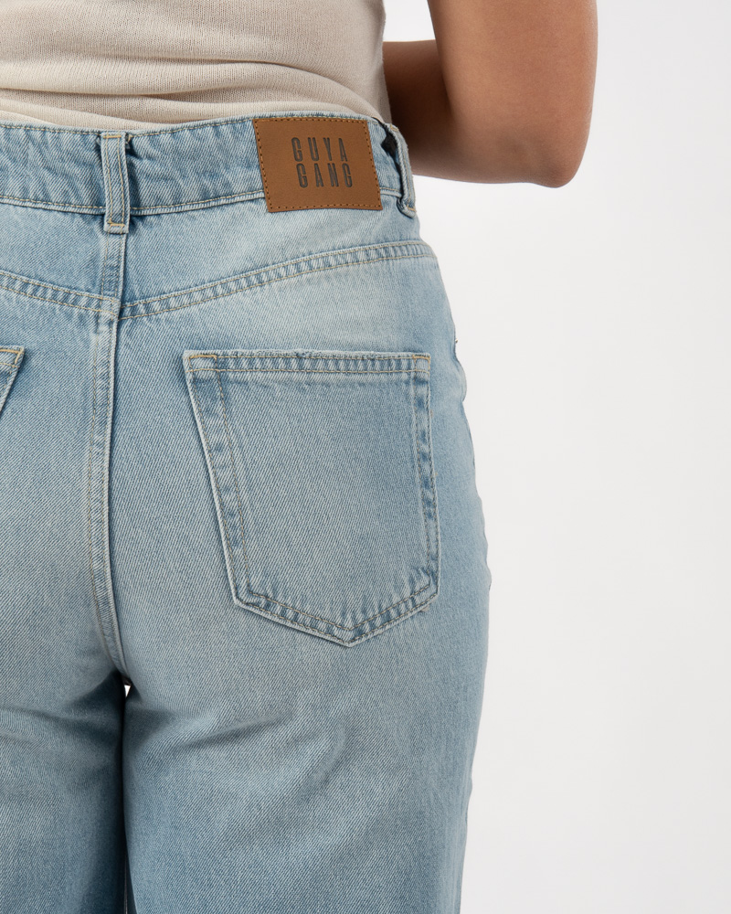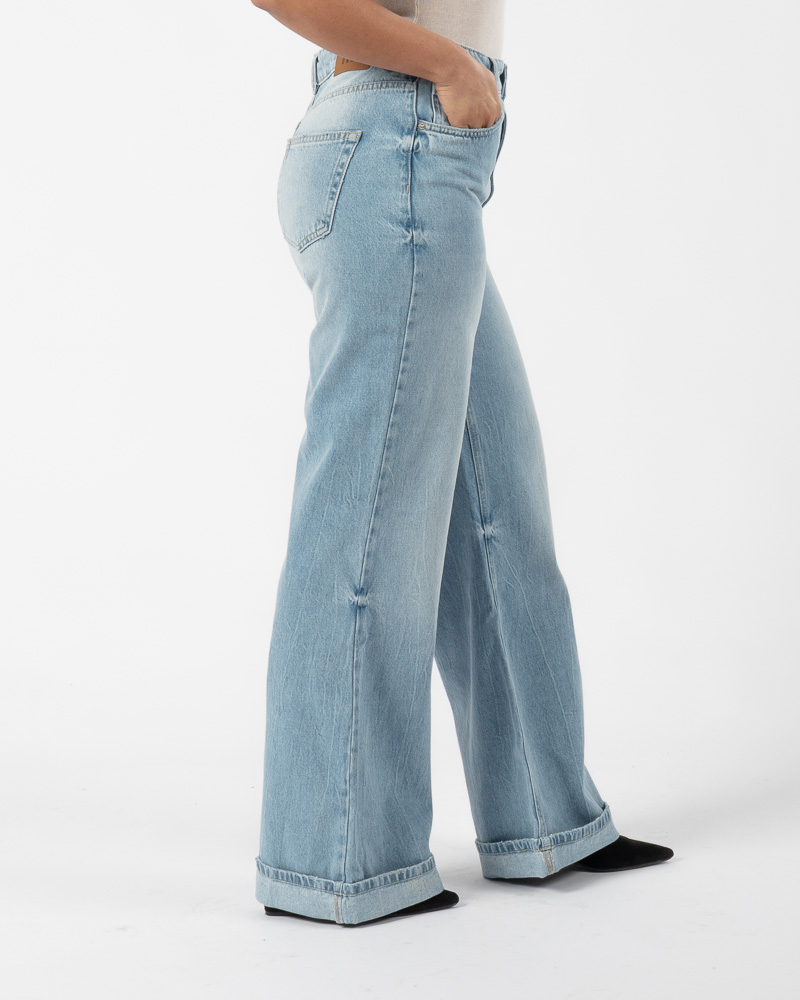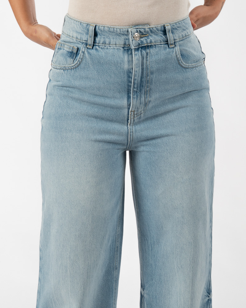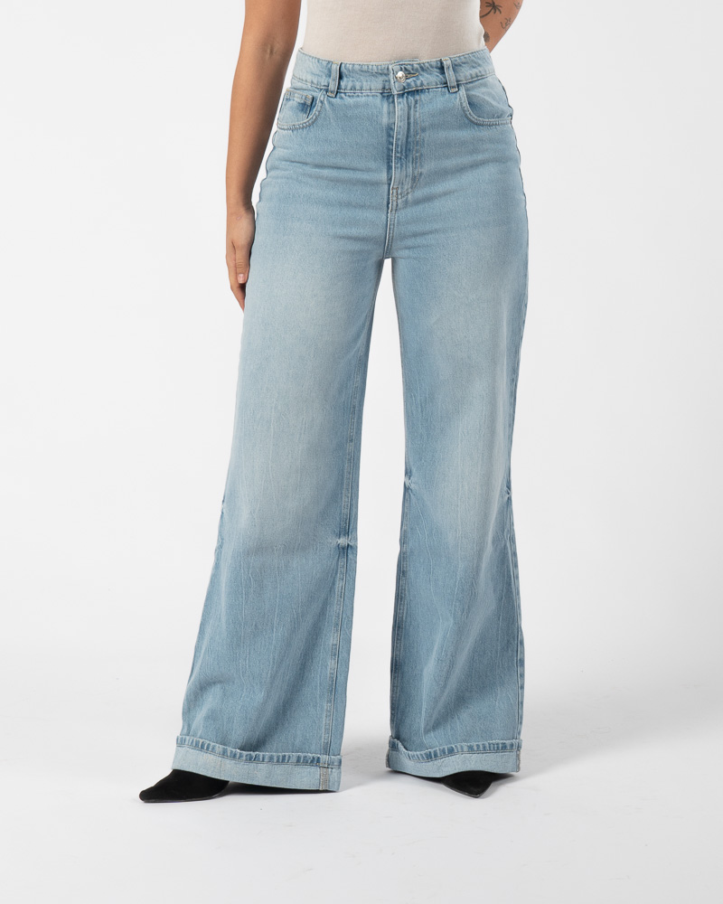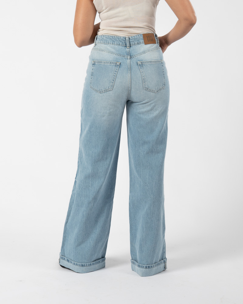 Cuffed Wide Leg Jeans Light Blue