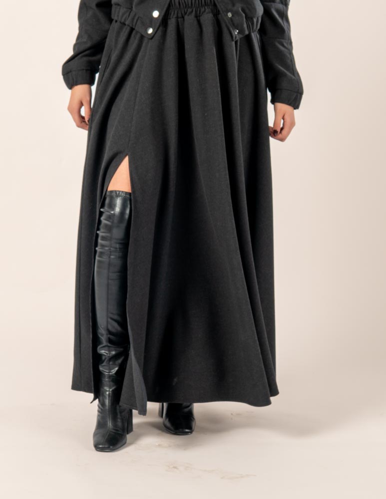 The Flowy Maxi Skirt offers a light, elegant drape that moves beautifully with every step. Designed with a high-rise elastic waistband and a full, ankle-length silhouette, it ensures comfort and a flattering fit for all body types. The airy fabric provides ease of movement and an effortlessly chic look, perfect for both casual days and dressy occasions.