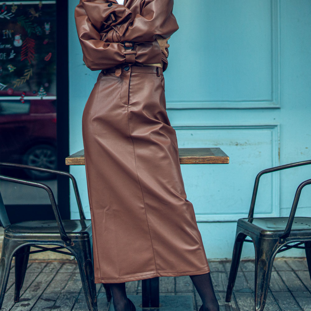 Leather Maxi Skirt Brown