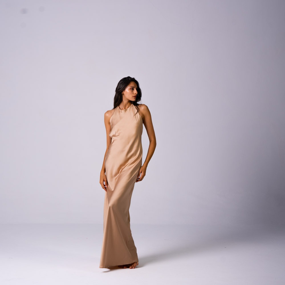 Maya Dress Satin Caramel