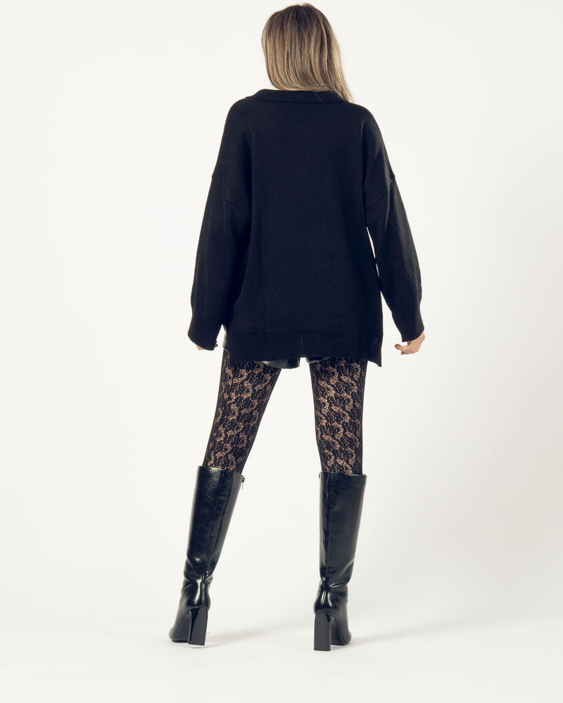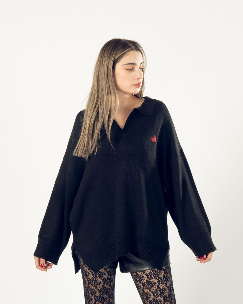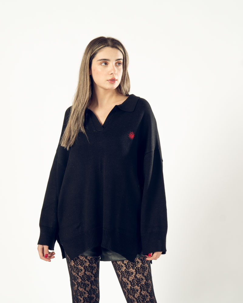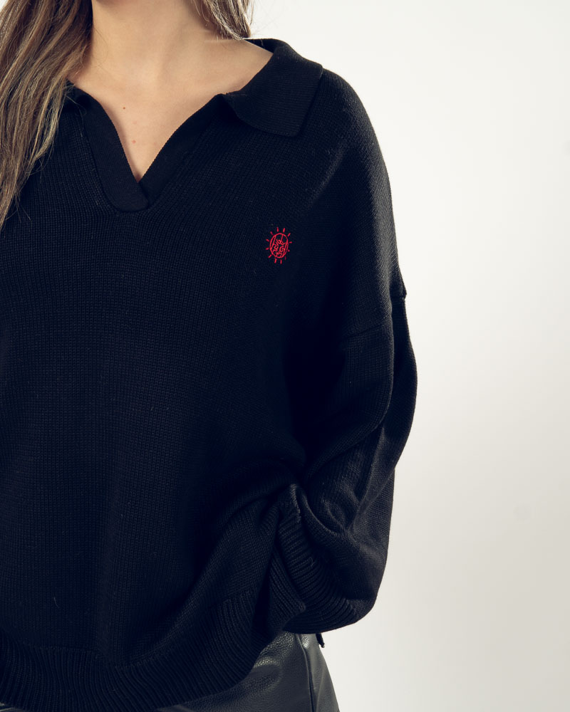 Oversized Knit Polo Black
