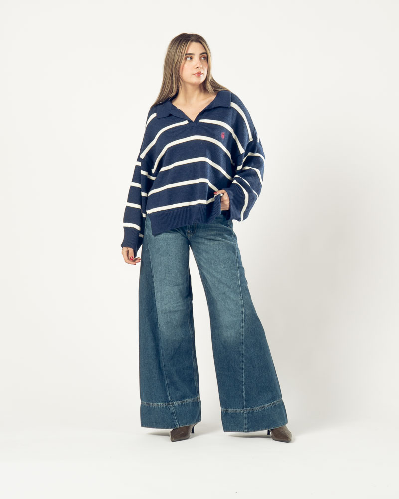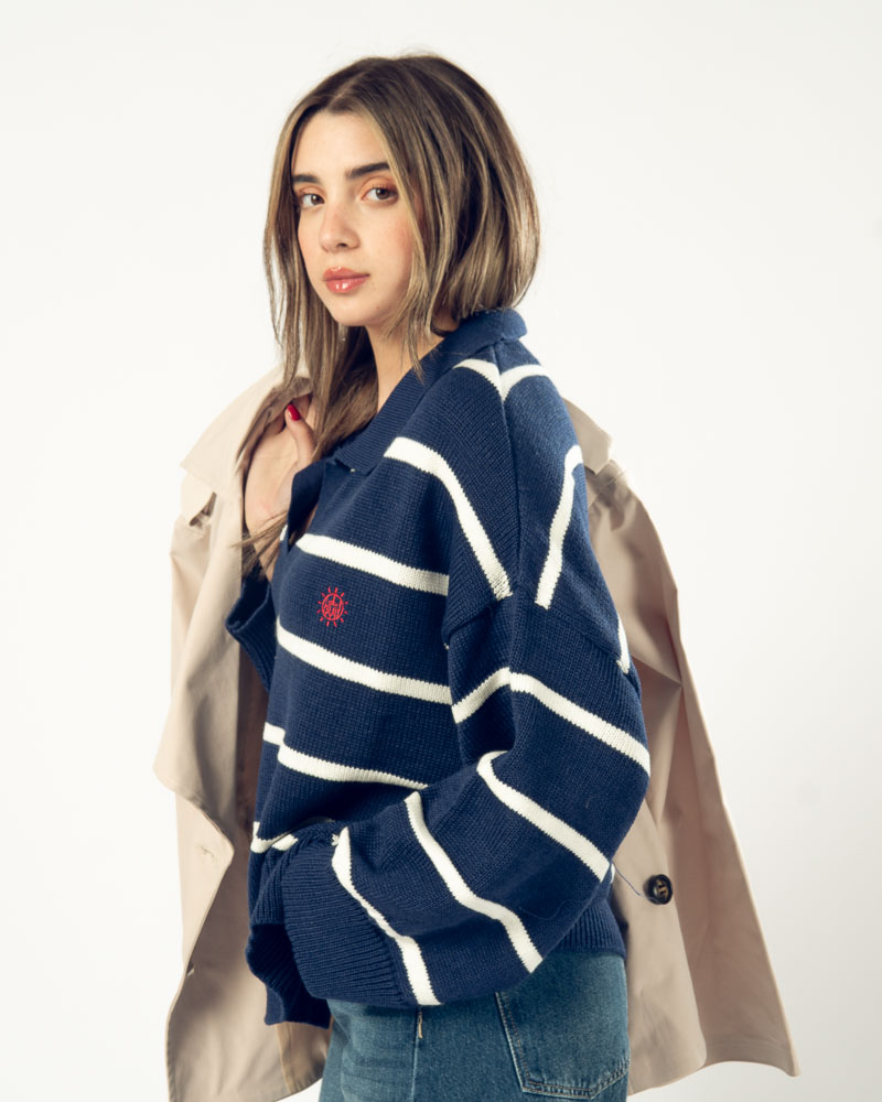 The Oversized Knit Polo brings a cozy, relaxed silhouette with a soft drape. Its generously cut body and dropped shoulders create an effortless, modern look perfect for layering or wearing on its own.