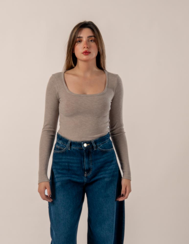 Scoop Neck T-Shirt Brown