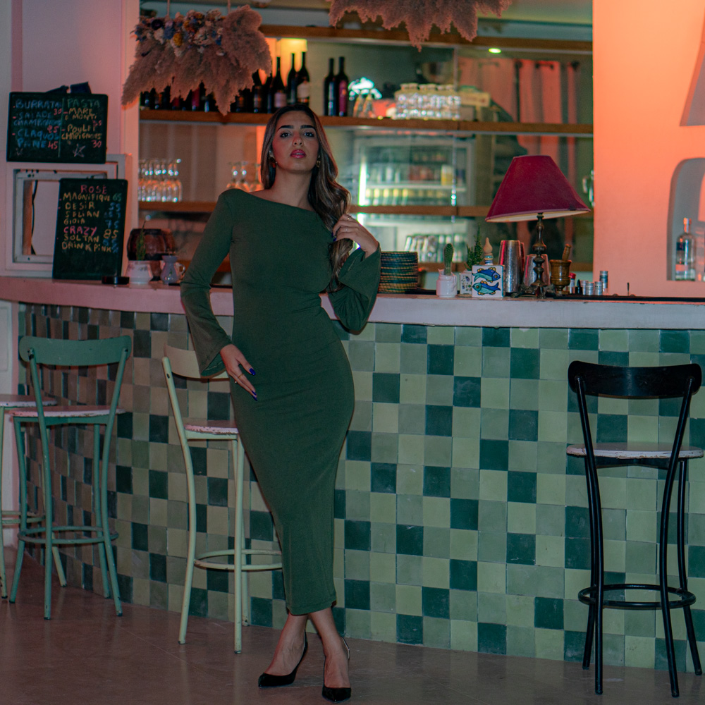 Winter Bareback Dress Sage