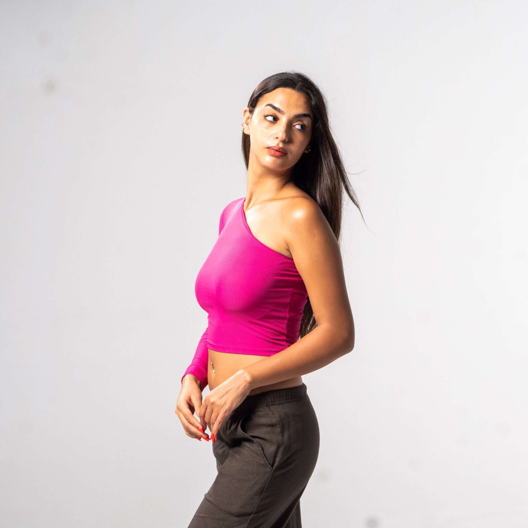 Asymetric Long Sleeve Top Pink