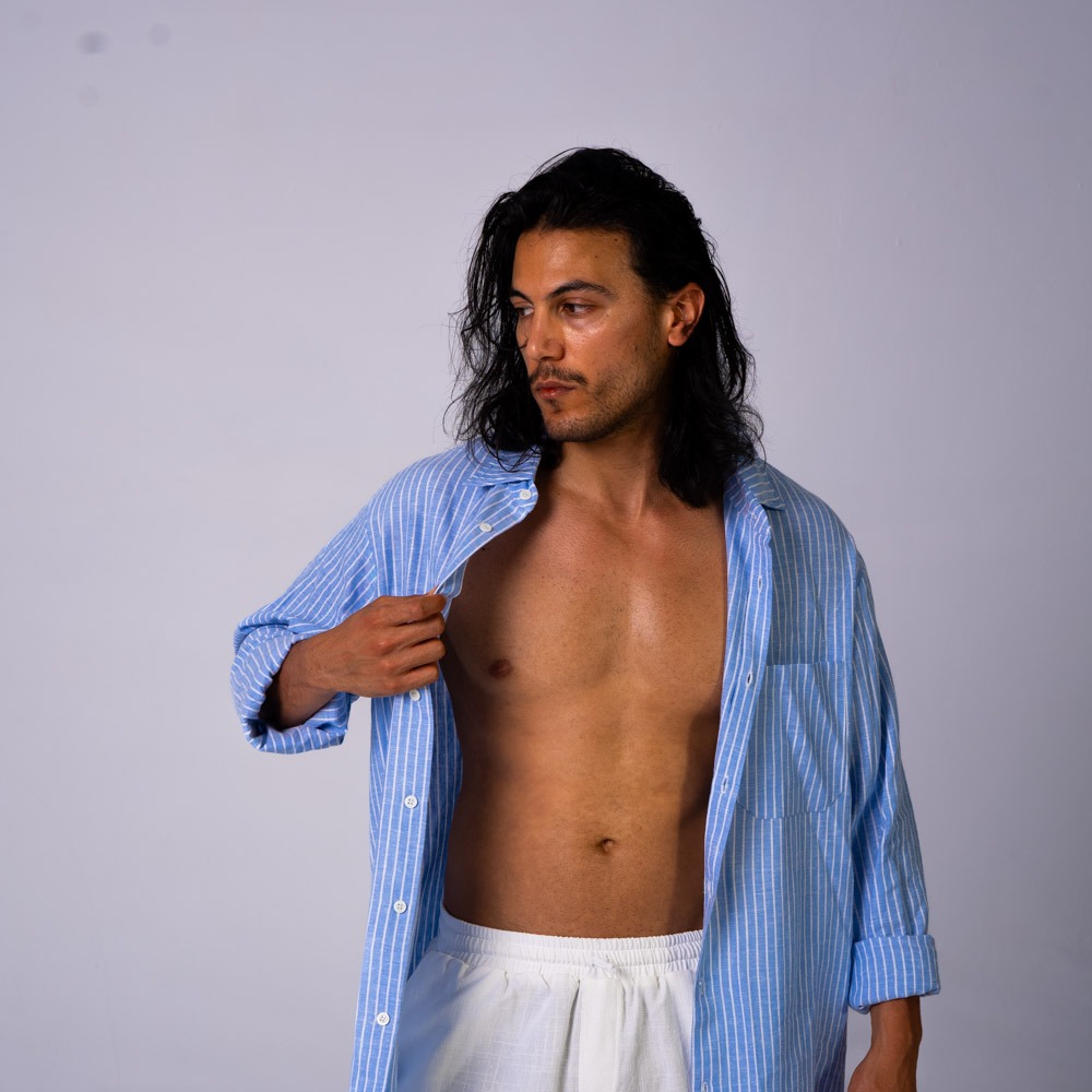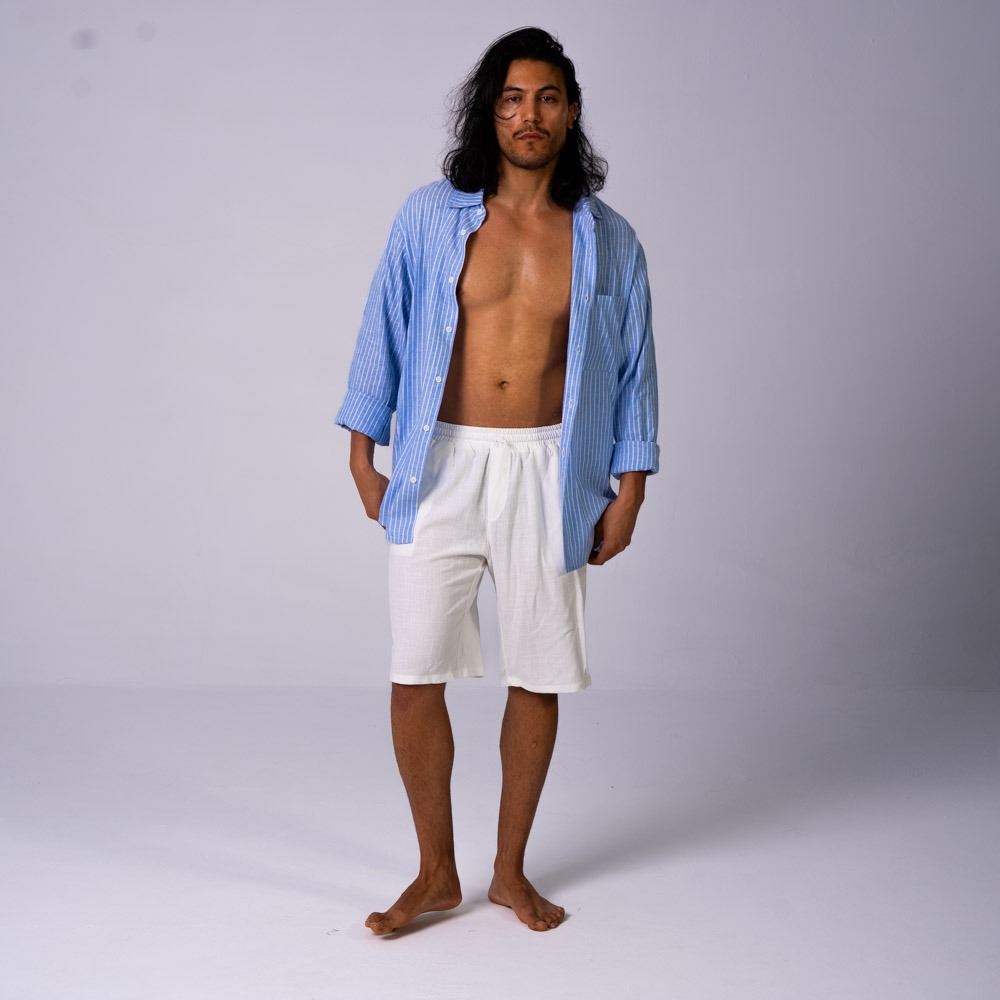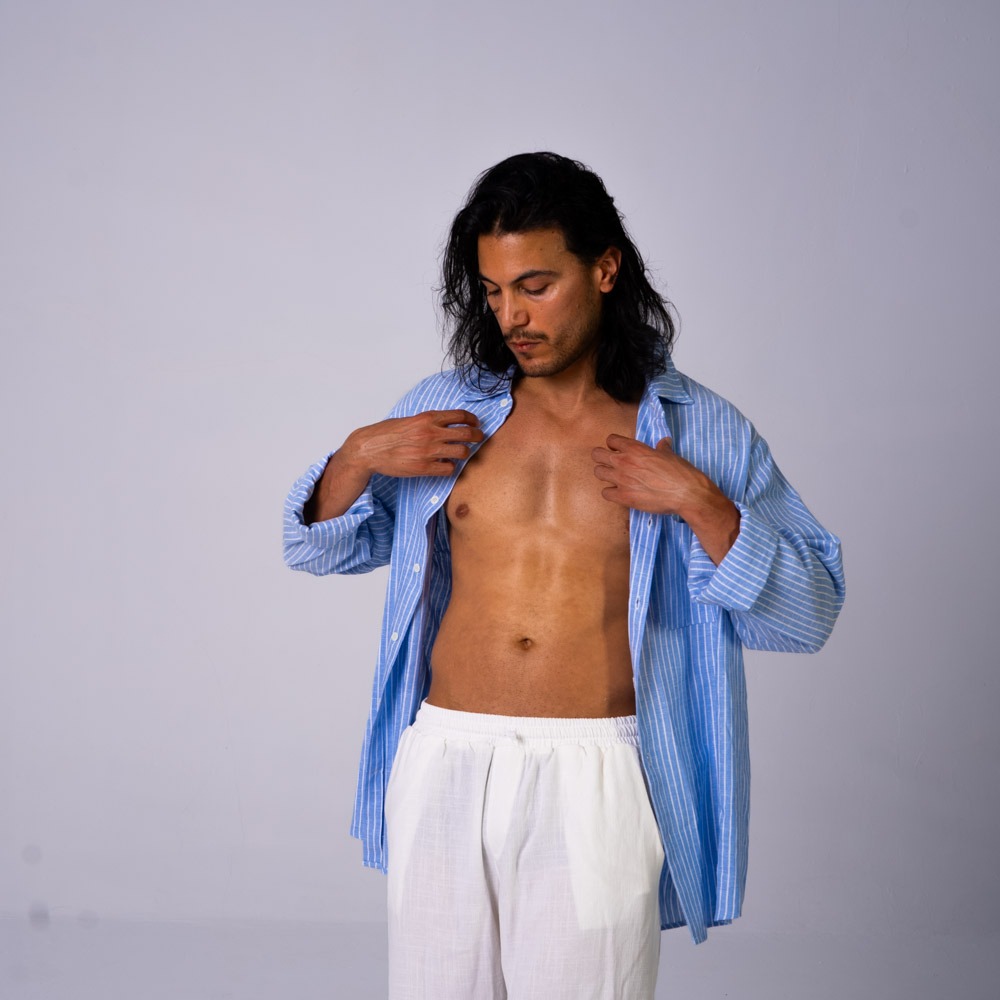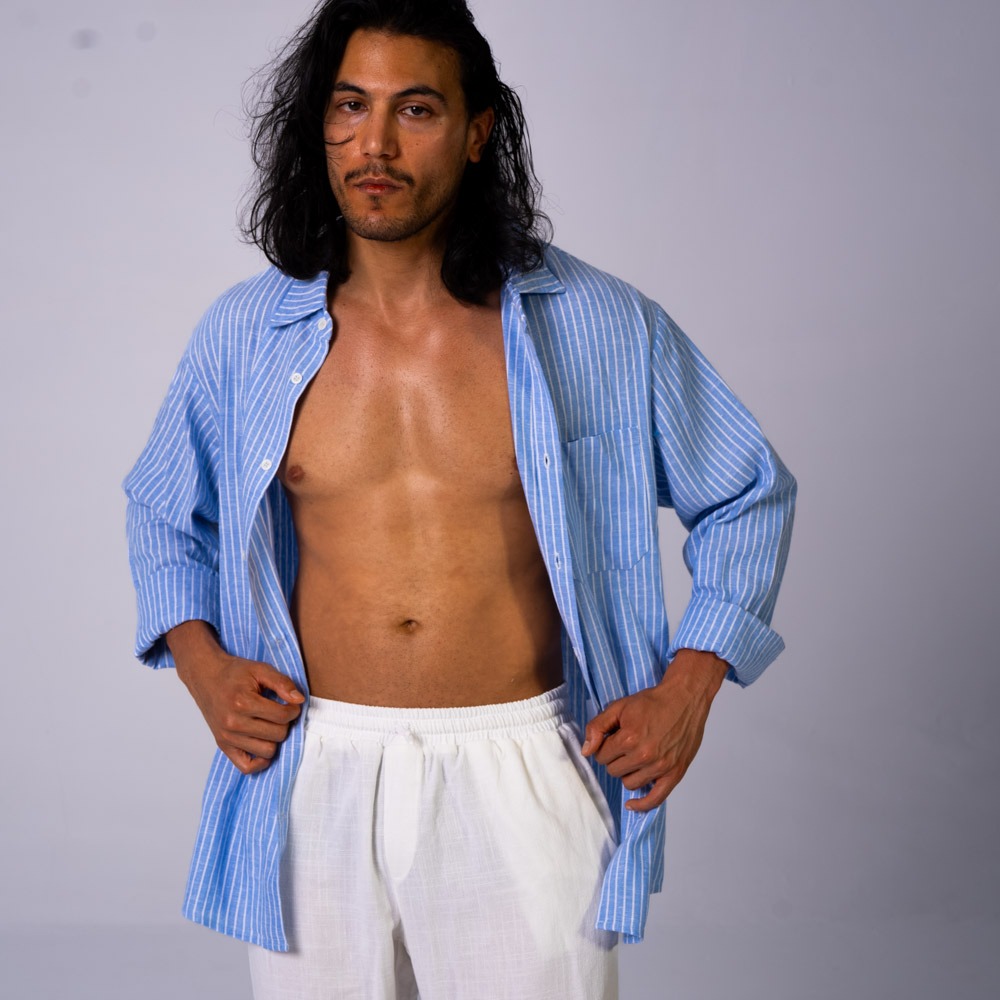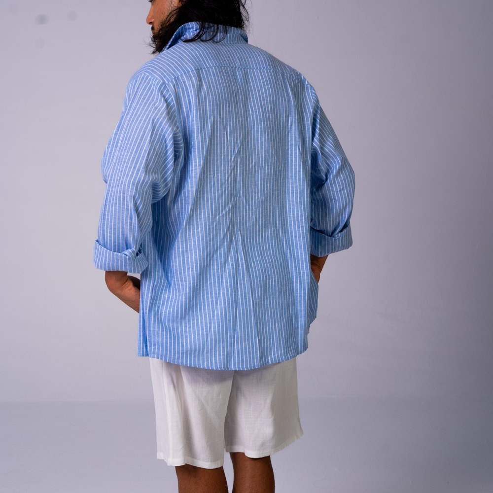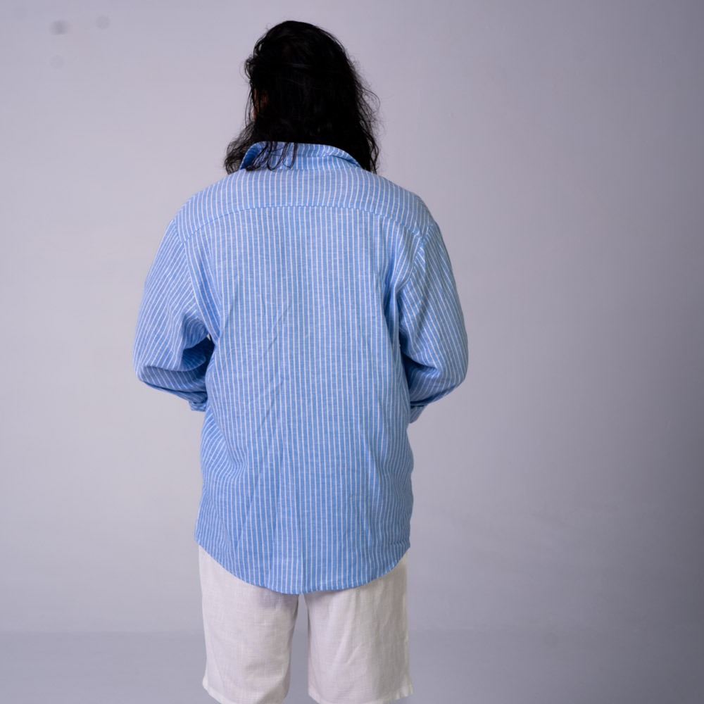 Oversized Linen Shirt Blue Stripes